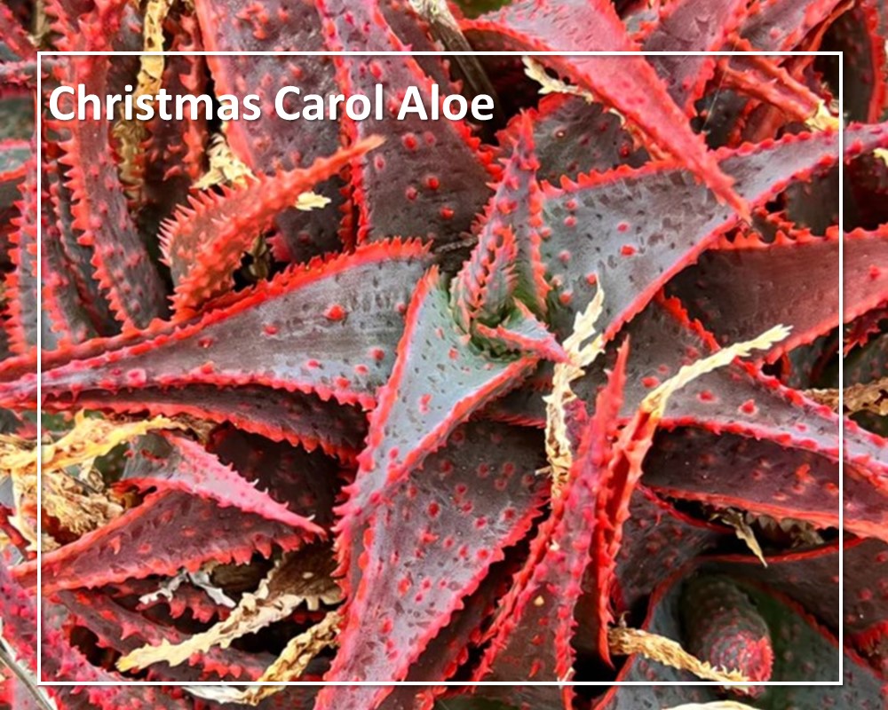 Christmas Carol is a small succulent with green leaves and red trim. If you put it in sunlight, the fleshy leaves will turn red overall.